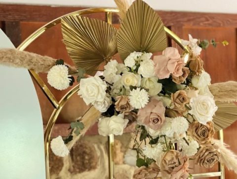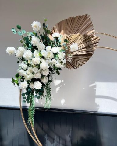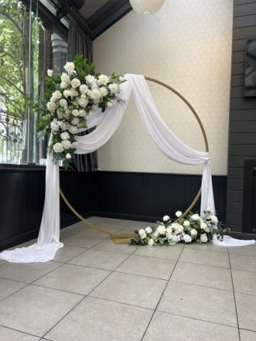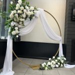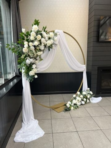 We also have arches, hoops and arbors perfect for the wedding ceremony, and receptions bridal table. The backdrop chosen would be adorned in flowers and foliage to give that elegant touch of love to your wedding day!
