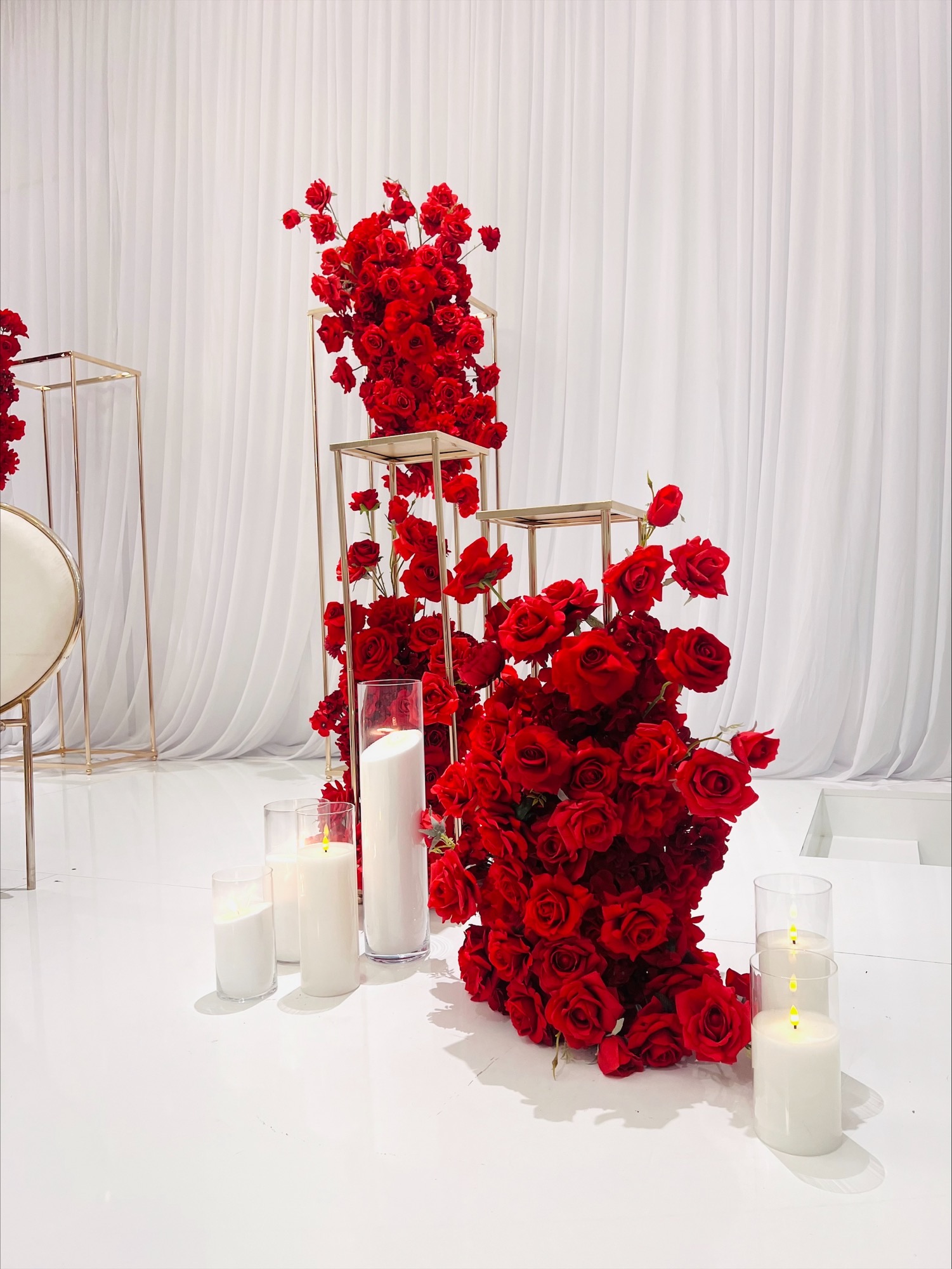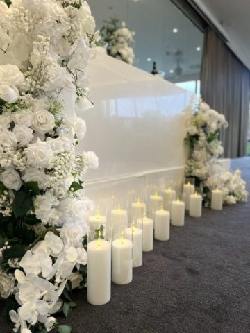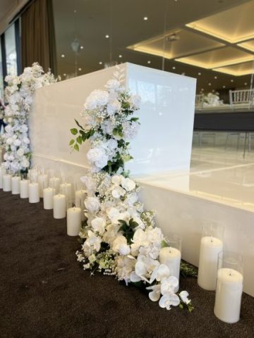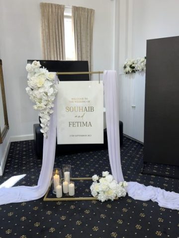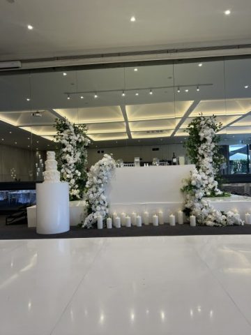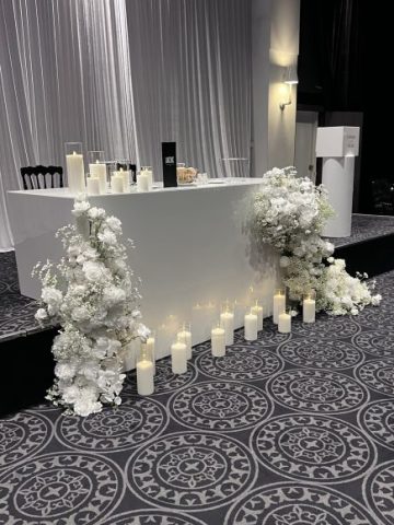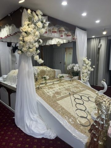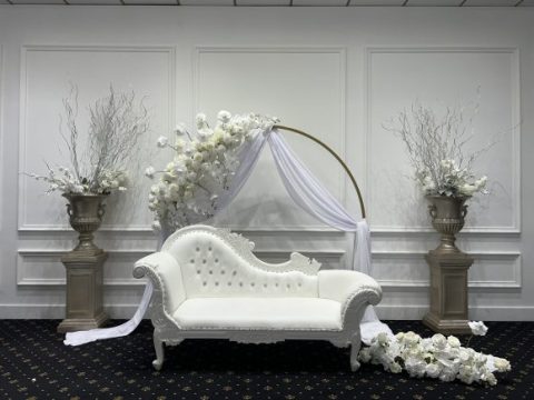 Most set ups are the traditional White, with touches of Gold and Silver dressed with florals of choice, the décor can be extended outside depending on your traditions and having an outdoor set up for any dancing to get the party started early! We offer a variety of setup options that can accommodate and provide your wedding day with the premium props and accessories it deserves!